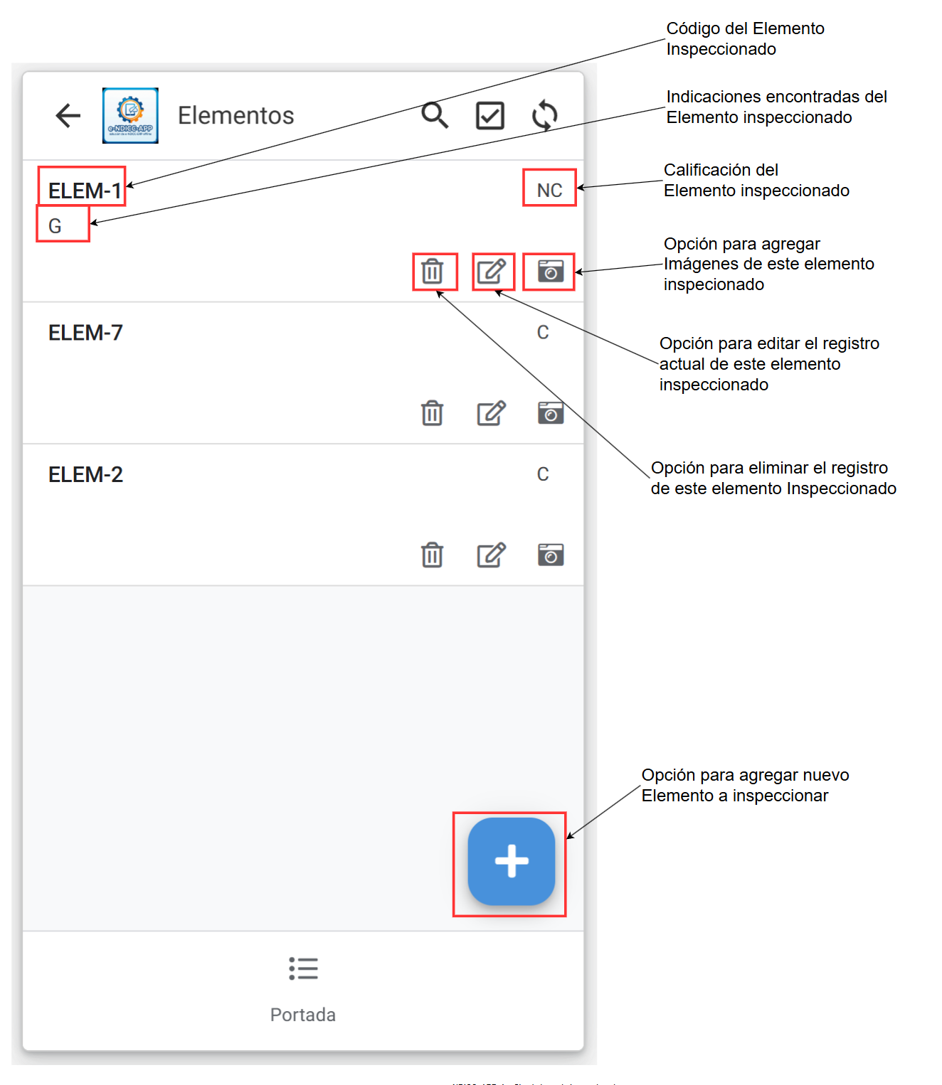 Fig 20 Vista de elementos inspeccionados en e-NDICC-APP
