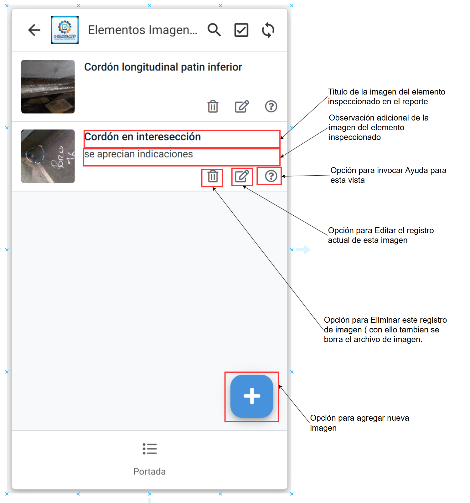Fig 23 Vista de imagen de elemento inspeccionado, en modo edición en e-NDICC-APP