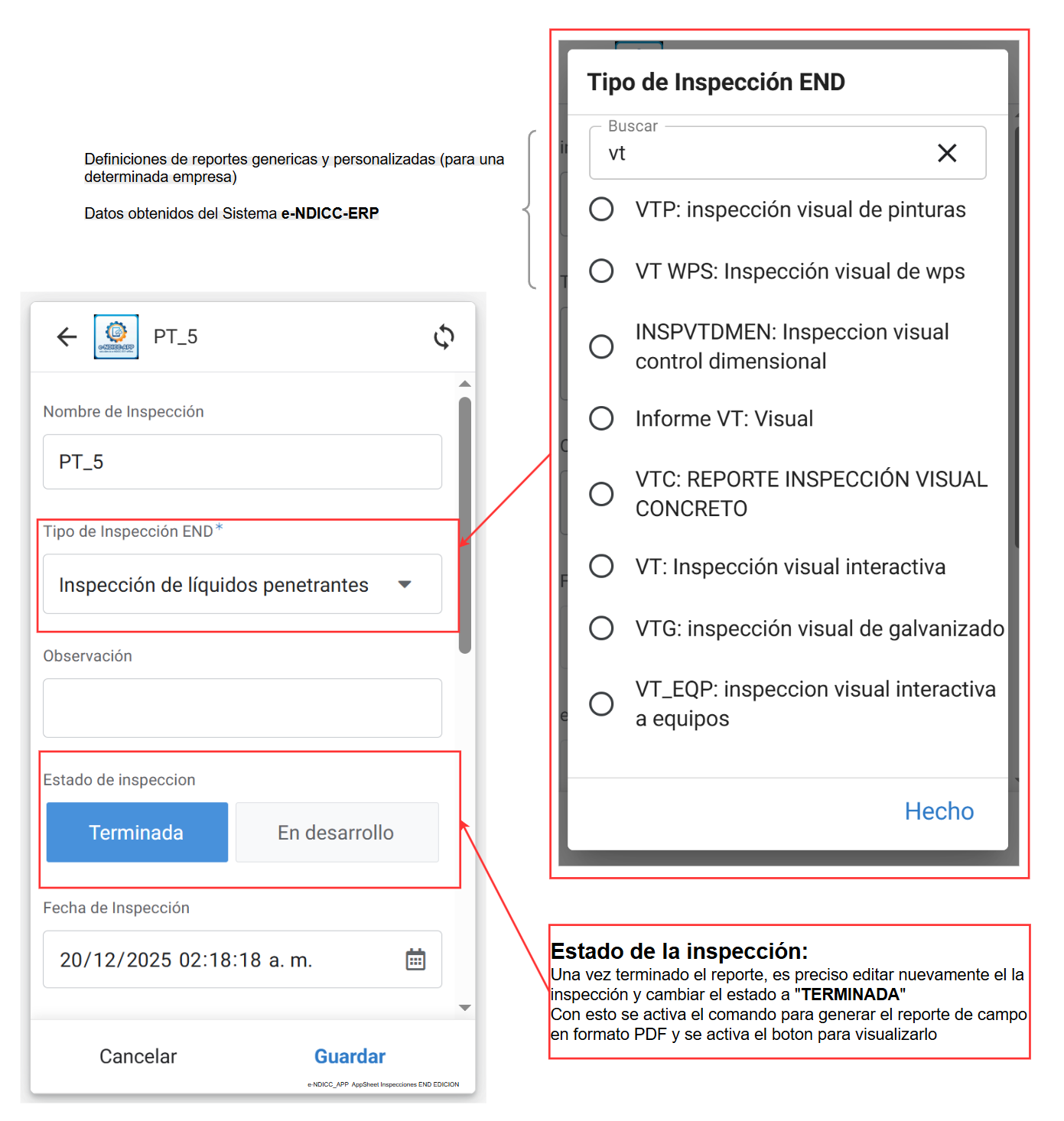 - Al final: hay que editar algo, se recomienda activar estado a finalizado (o cambiar algo adicional) para que se genere reporte de inspección de Campo en formato PDF