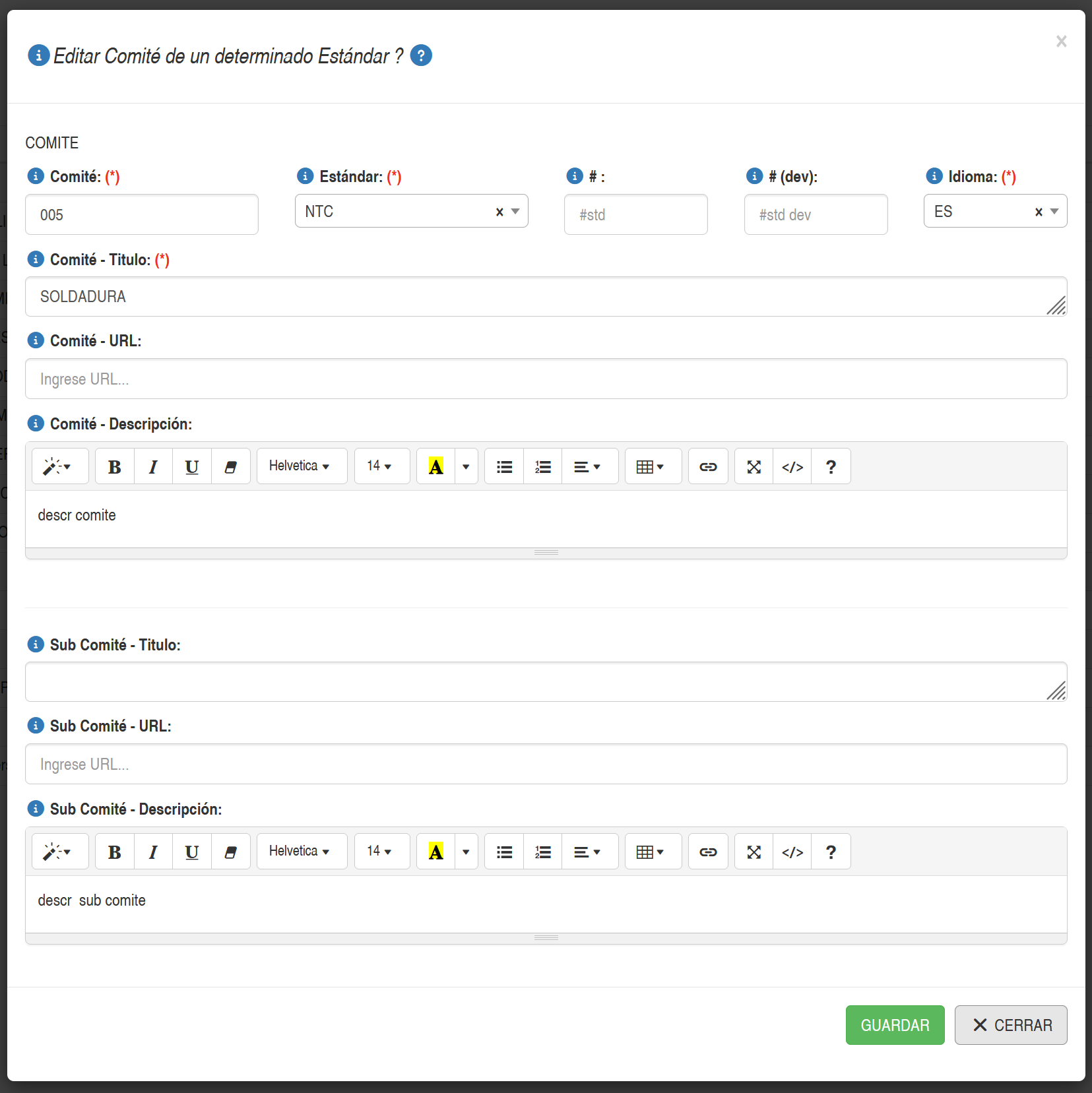 Fig 1066 Extracto de pantalla, con ventana emergente de información para editar/agregar un determinado comité.