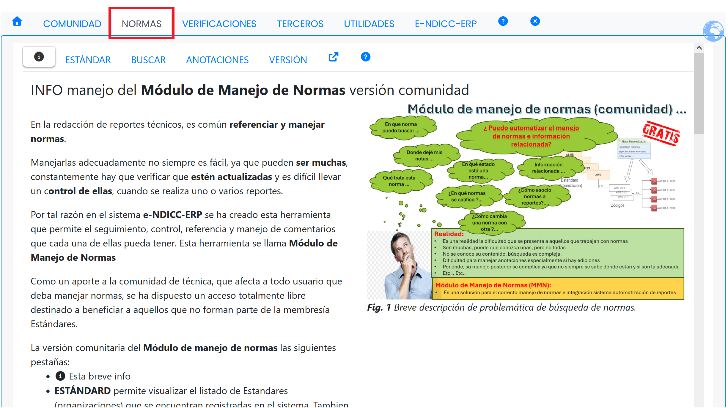La versión comunitaria del Modulo de manejo de normas las siguientes pestañas: