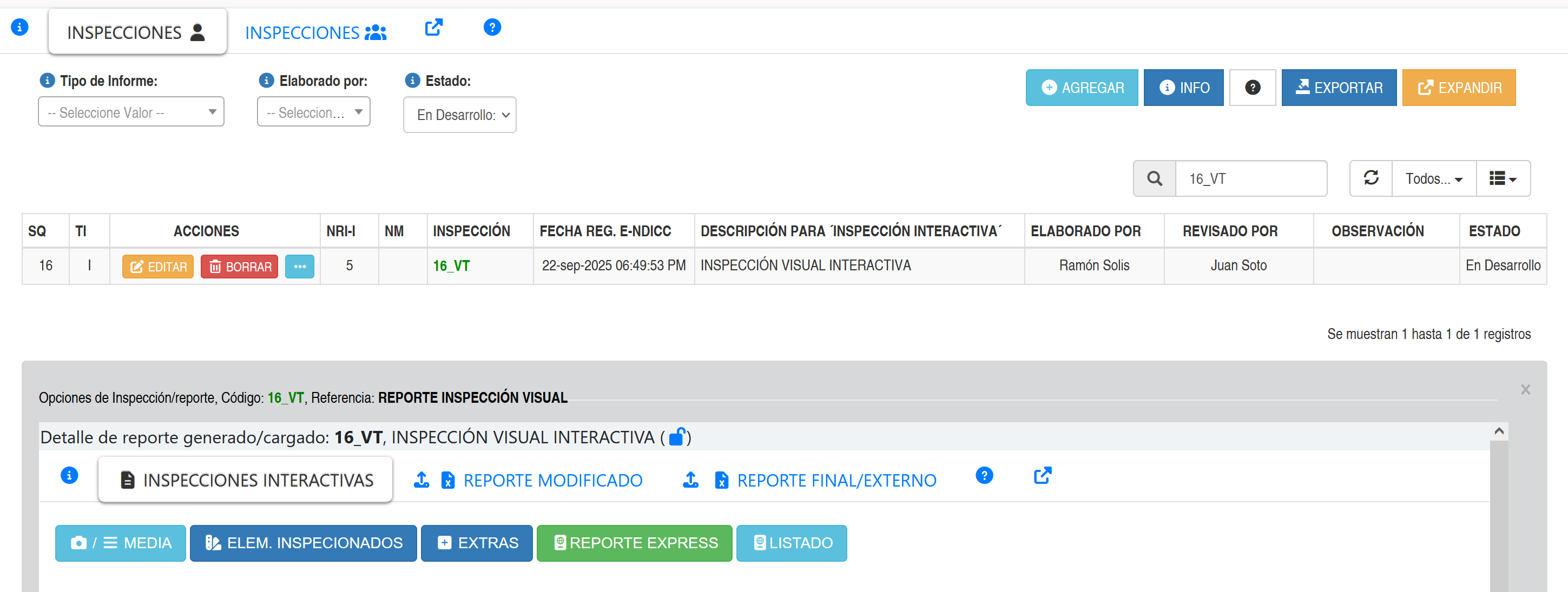 ) de un determinado reporte, se activará una ventana detalle que permite especificar mejor que se hará o como se manejará un reporte generado/cargado, tal como se aprecia en la siguiente imagen.