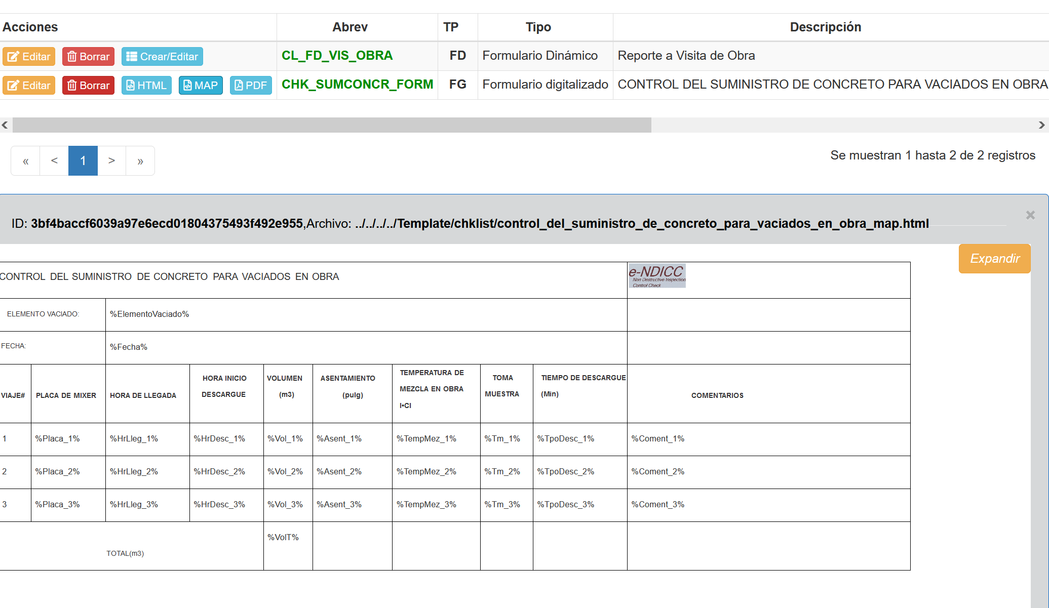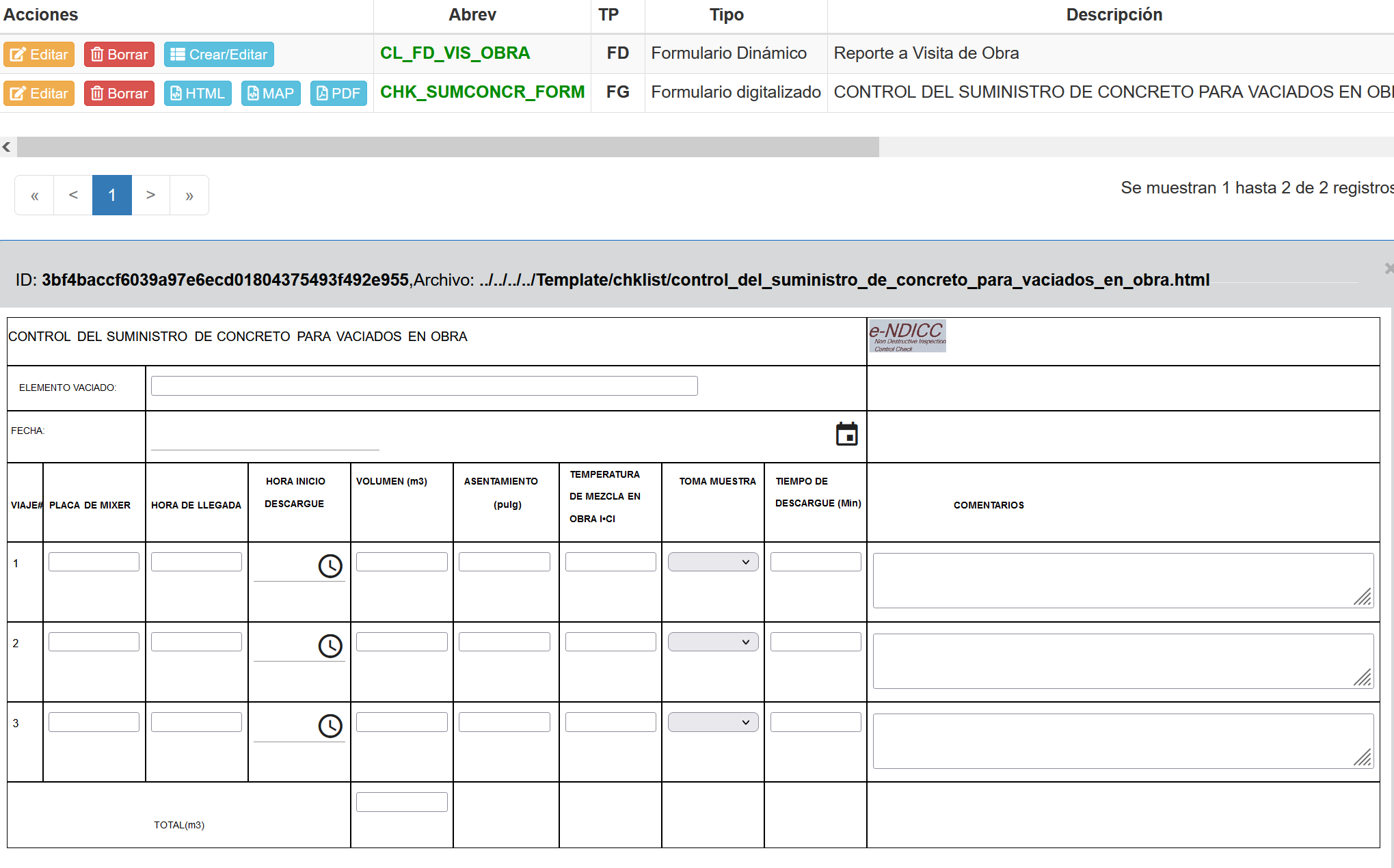 Para tal efecto se deja los archivos de formulario y mapeo en una carpeta especial por ejemplo /Template/chklist y se procede a registrar el formulario.