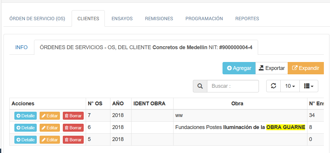 Portada / Ensayos Cilindros Concreto/ Clientes/ Acceso Ordenes Servicio para un determinado Cliente
