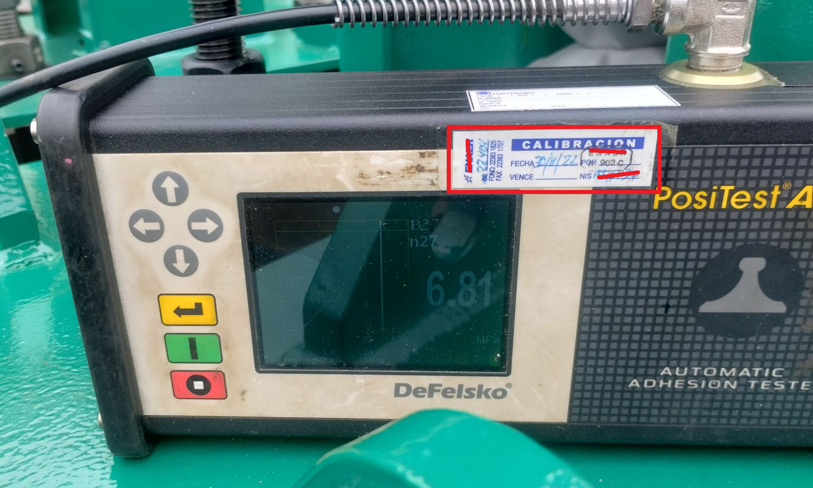 Fig 736 imagen de equipo mostrando su respectiva Etiqueta de calibración. (imagen con fines descriptivos)