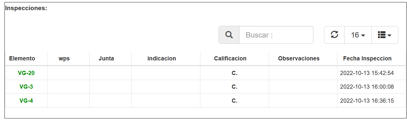 De la imagen anterior se puede apreciar que se guarda el registro de ingreso de cada inspección.