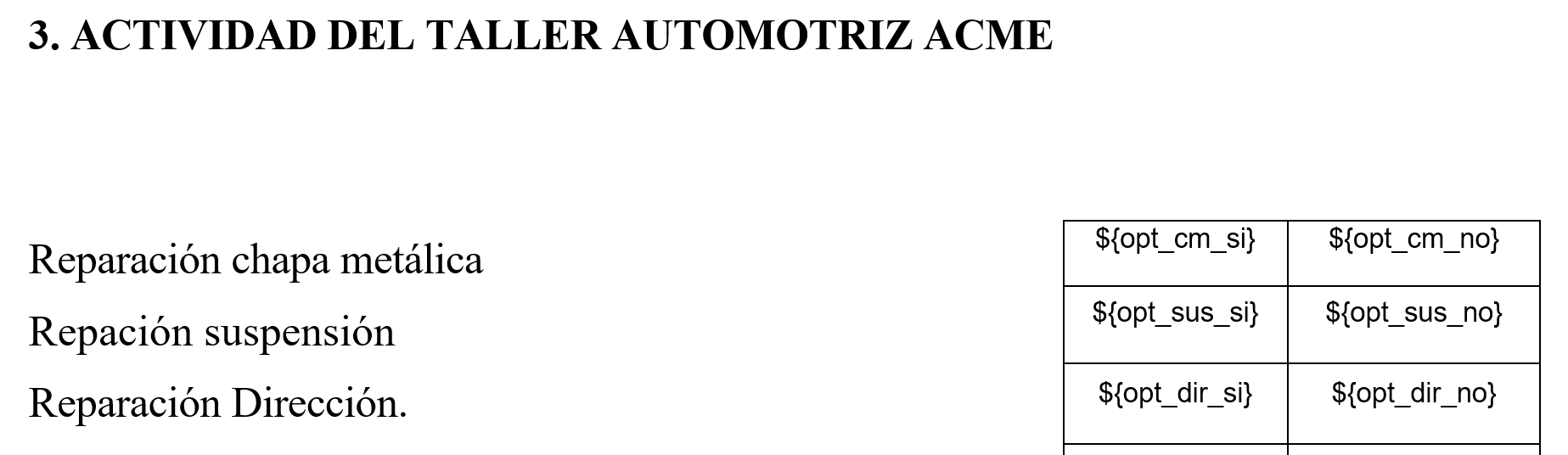 Fig. 9 Ejemplo de mapa de variables de formulario con una variable por opción