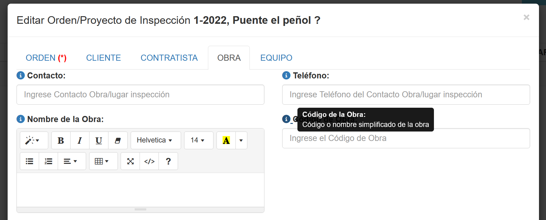 o"de la inspección" no indica que colocar al lado.