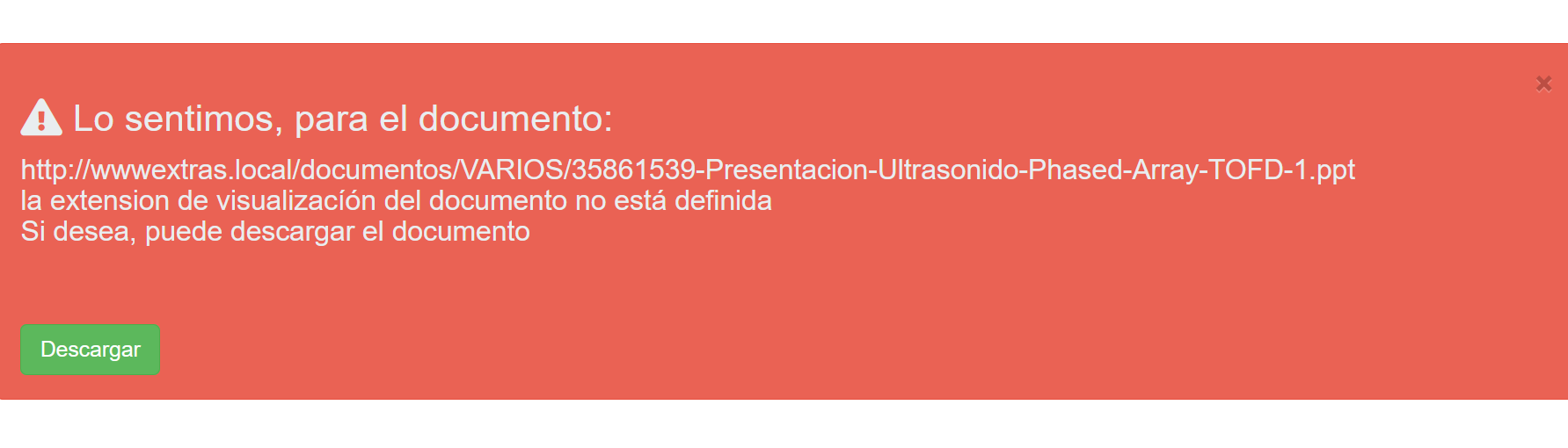 Fig 1343 Extracto de pantalla, indicando que error que no se puede visualizar el documento.