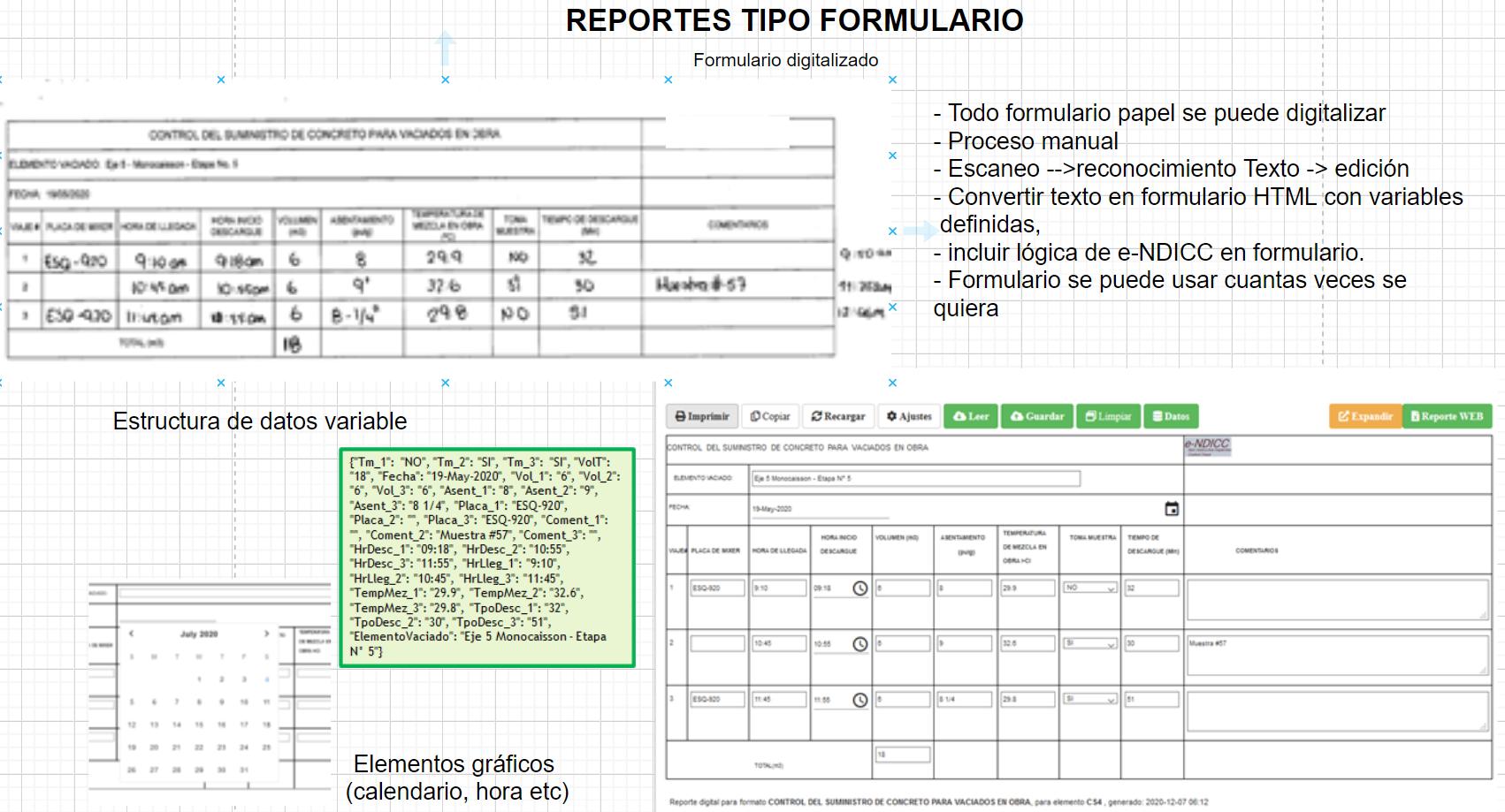 Reportes tipo Check list o Formulario Digitalizado •Papel 🠊 formulario digital •Estructura datos flexible •Elementos gráficos que facilitan ingreso datos. •Posterior tratamiento de datos, por ejemplo evolución en el tiempo •Maneja Fotos N |