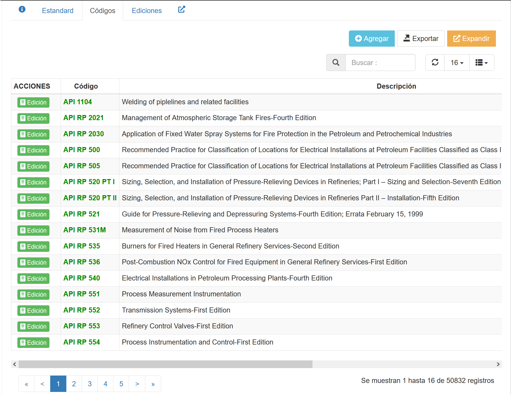 Cada Estándar tiene una gran cantidad de Códigos asociados.