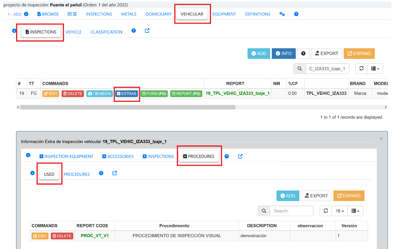 Fig. 23 Visualización de opción de Procedimiento de inspección en Reporte Express