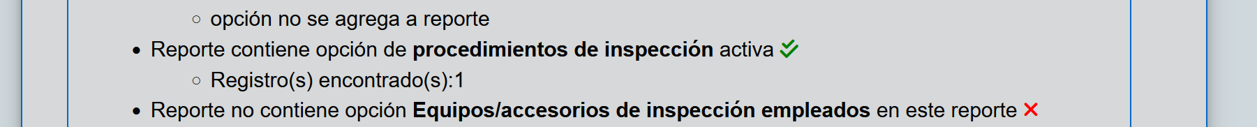 Fig. 27 Detalle de resultados de procedimientos de inspección en reporte tipo Formulario