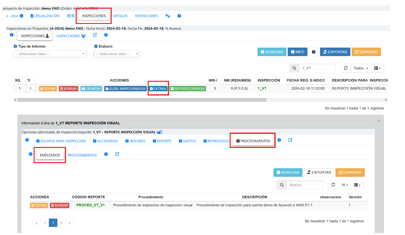 CÓMO AGREGAR PROCEDIMIENTO DE INSPECCION A REPORTE