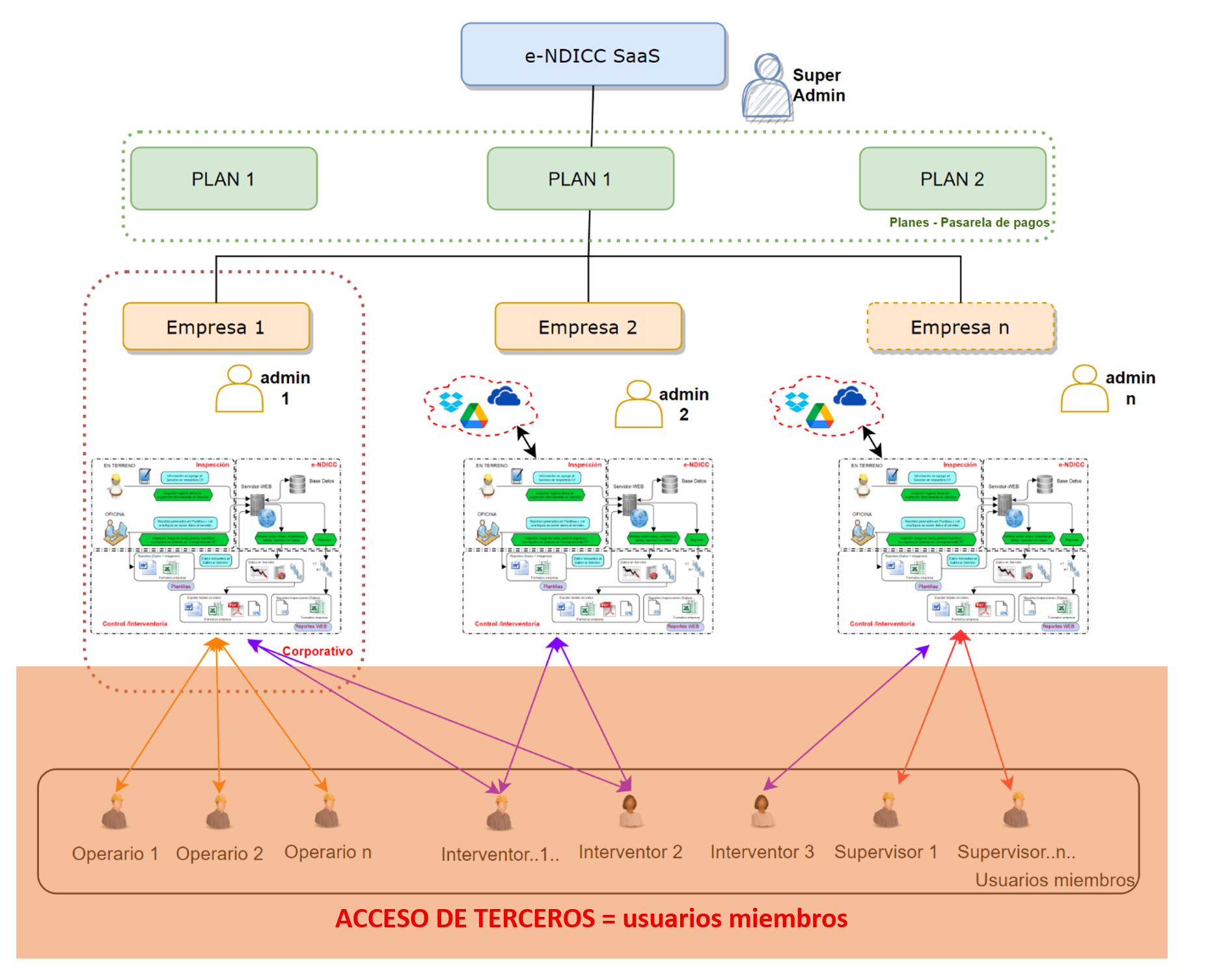 Fig. 41 Diagrama de sistema e-NDICC-ERP indicando formas de acceso para terceros.