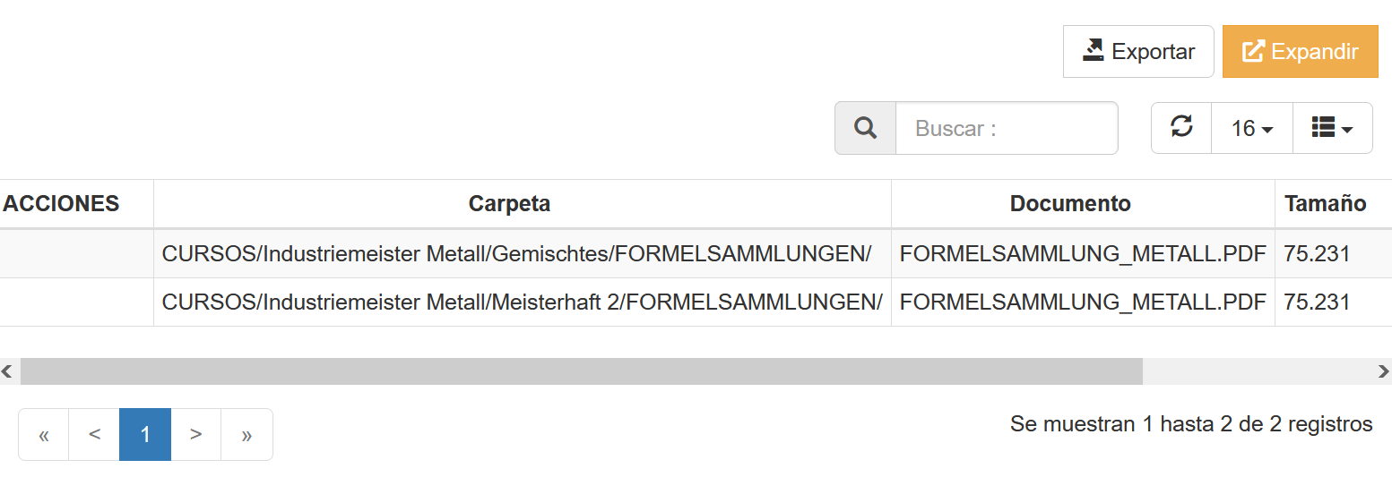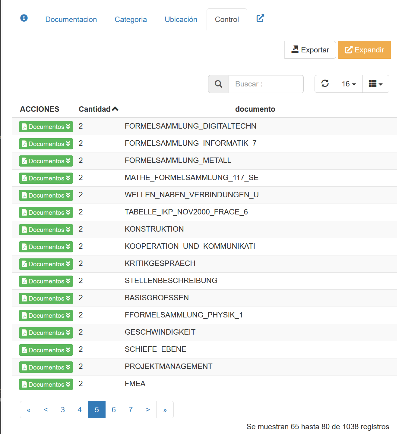 Para obtener un detalle de los elementos que se repiten, es preciso seleccionar el botón Documentos, cuyo resultado se encuentra en la imagen a continuación.