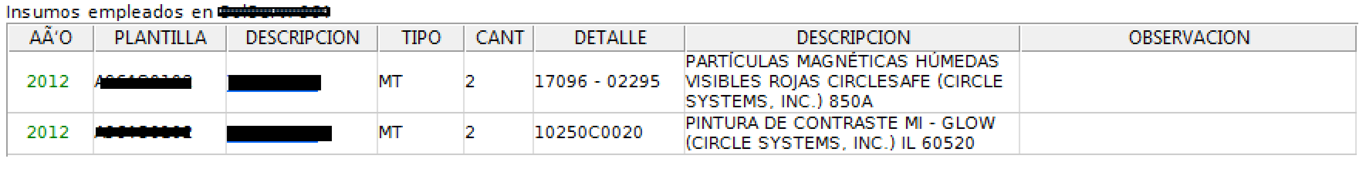 Fig 1017 Insumos/costos de partículas Magnéticas reflejada en la Intranet