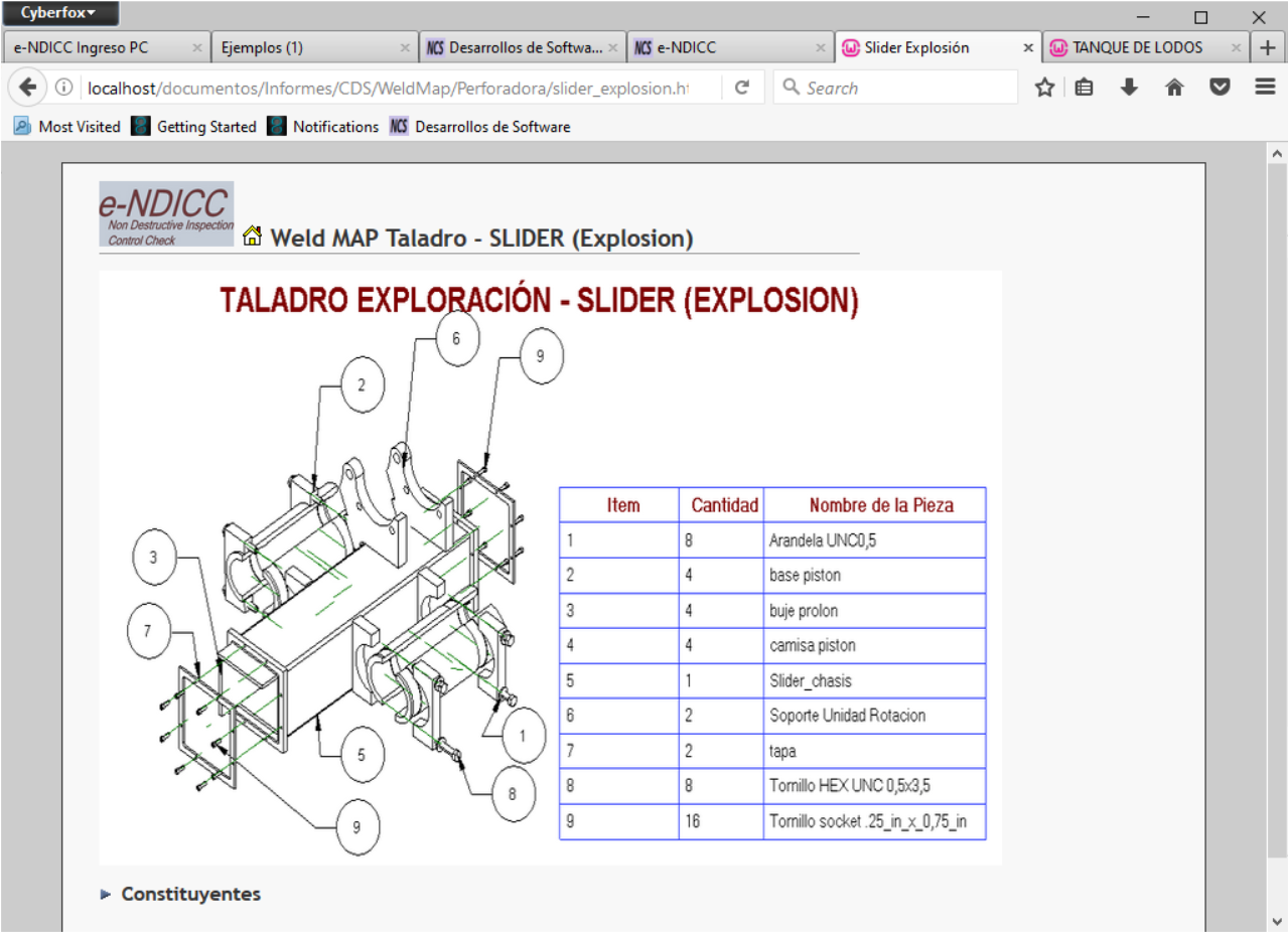 La versión demostrativa se puede apreciar en el siguiente vínculo https://www.nichterleinconsulting.com/simicd/WeldMap/Perforadora/index.html