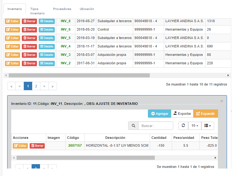 Detalle de Inventario