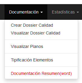 Las opciones de menú que se presentan cuando se selecciona "Documentación" son las siguientes.