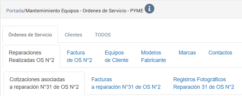 Fig 544 Pestañas de Tercer nivel, relacionadas con la Documentación Anexa asociada a una Reparación de un equipo Seleccionado.