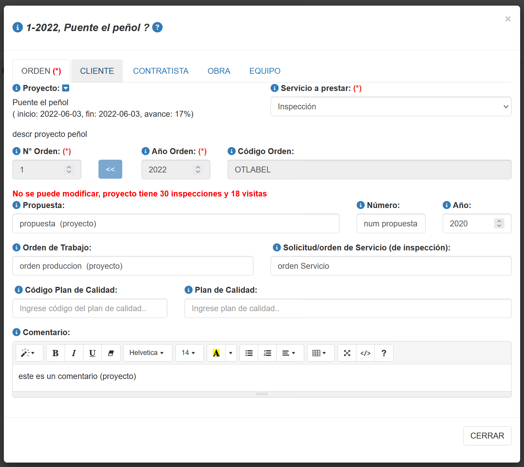 Editar Orden/Proyecto de Inspección