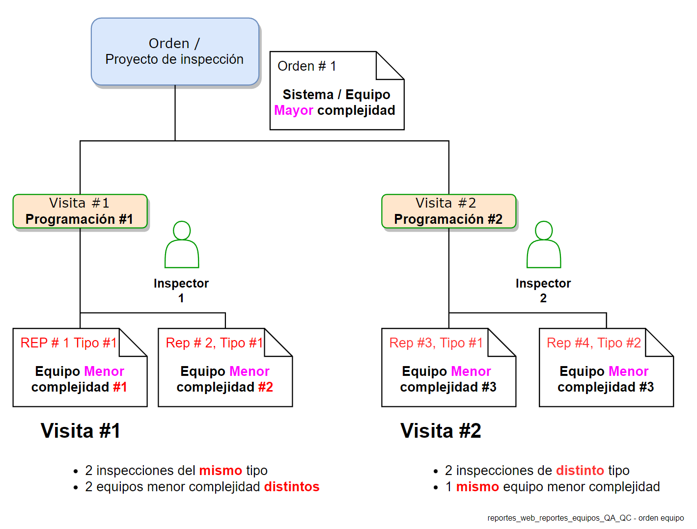 Fig 490 Detalle de orden e inspecciones para un Sistema/equipo mayor complejidad y equipos de menor complejidad.