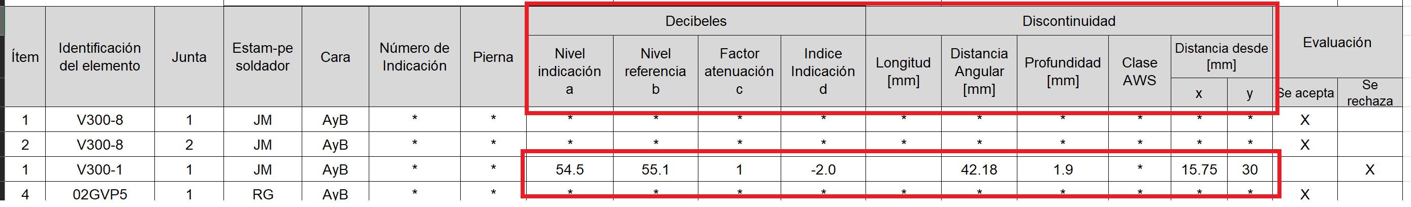 Cuando se realiza una inspección de Ultrasonido por el codigo AWS, la norma exige que la información se disponga de una manera mas detallada que en el caso de una inspección convencional.