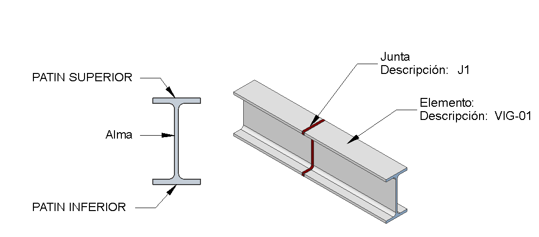 En el caso de realizar una inspección de Radiografía o por ultrasonido a la junta de una determinada Viga, se ha de describir las zonas como Alma, Patín Superior y Patín inferior.
