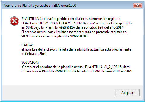 Error 1000: Nombre de Plantilla ya existe en e-NDICC