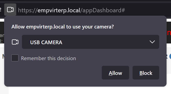 junto a la imagen anterior aparecerá un recuadro solicitando activar la camara, tal como se muestra en la siguiente imagen.