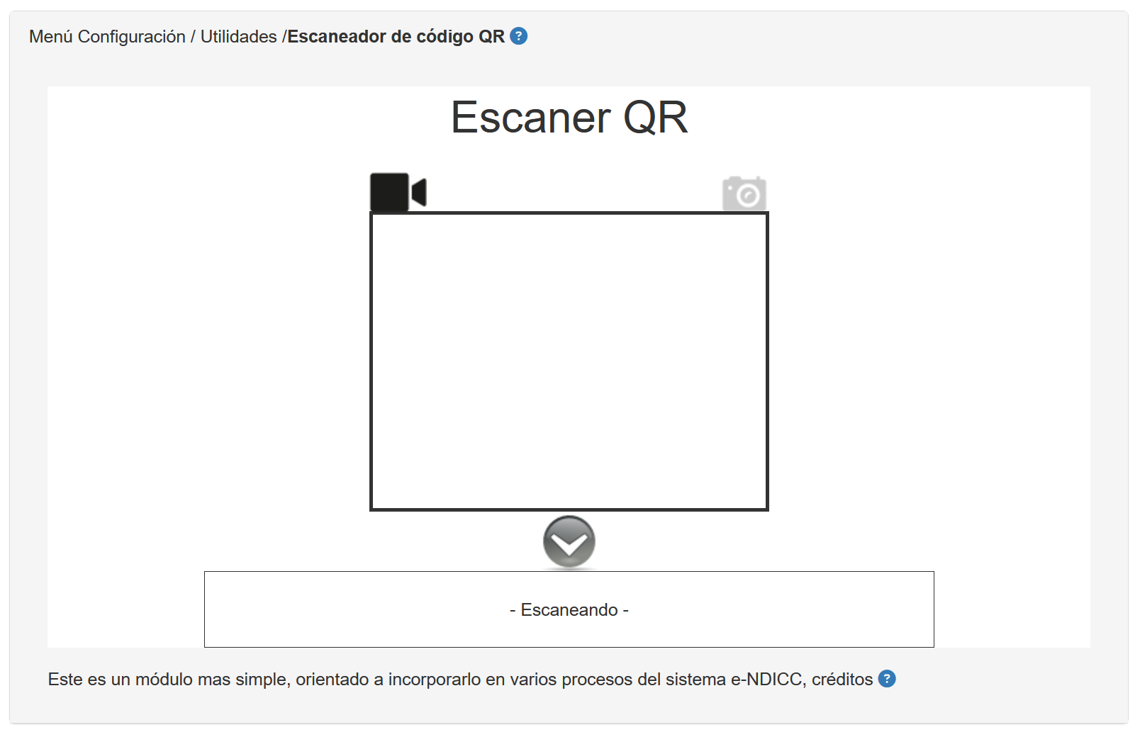 Al seleccionar esta opción se activará un programa que es capaz de escanear un código QR y aparecerá una pantalla tal como se muestra a continuación.