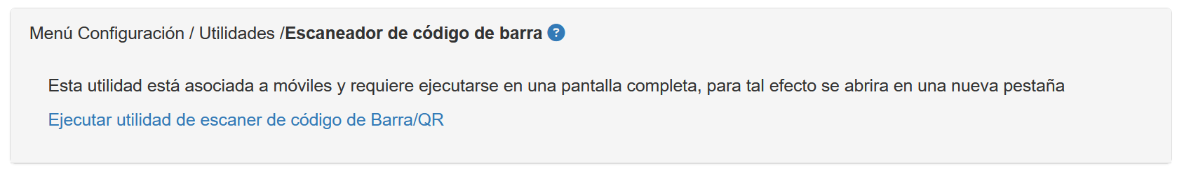 Menú Herramientas/Menú Configuración/Opción Utilidades/Escáner códigos de Barra/QR