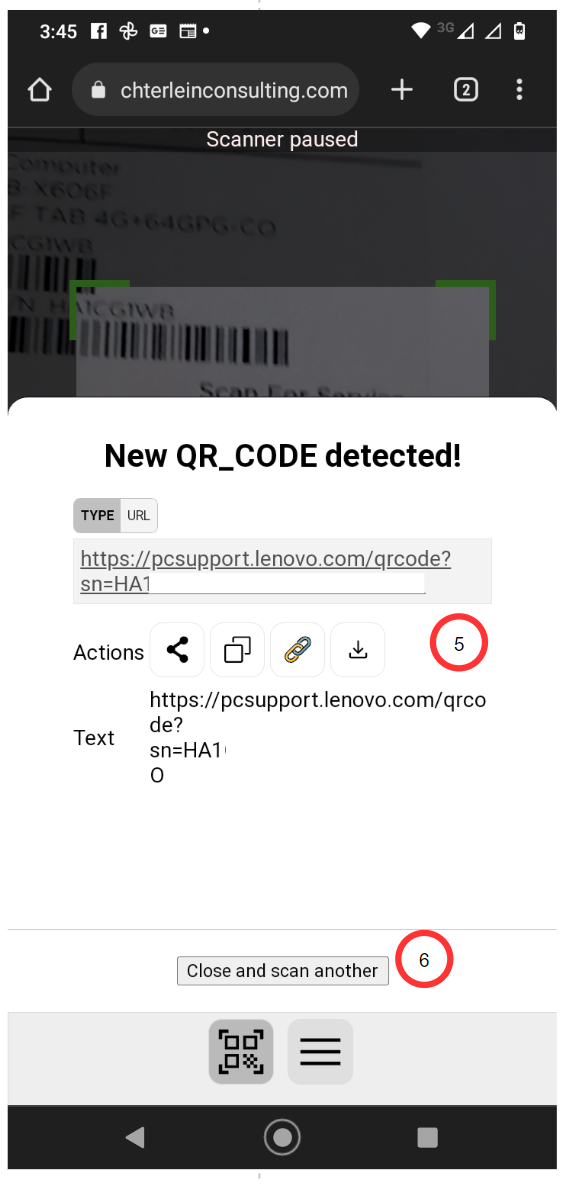 6.Por último, se presenta un botón que permite cerrar esta ventana y realizar otro escaneo. (close and scan another)