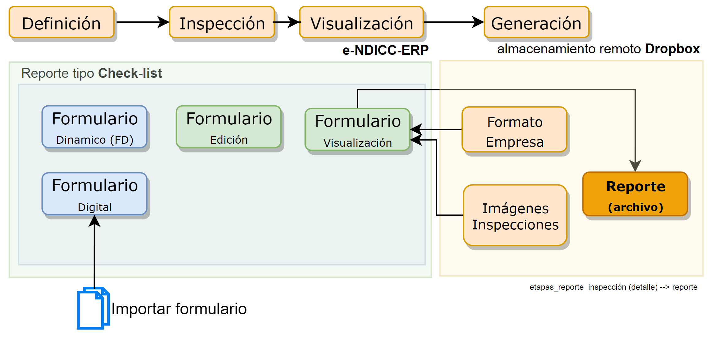 Fig 1086 Esquema de las principales etapas que tiene un reporte en e-NDICC para reportes de inspección.