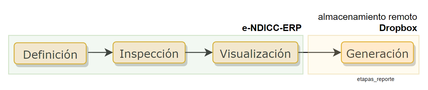 En el sistema e-NDICC-ERP todo reporte debe cumplir una serie de Etapas, tal como se muestra en la siguiente imagen.