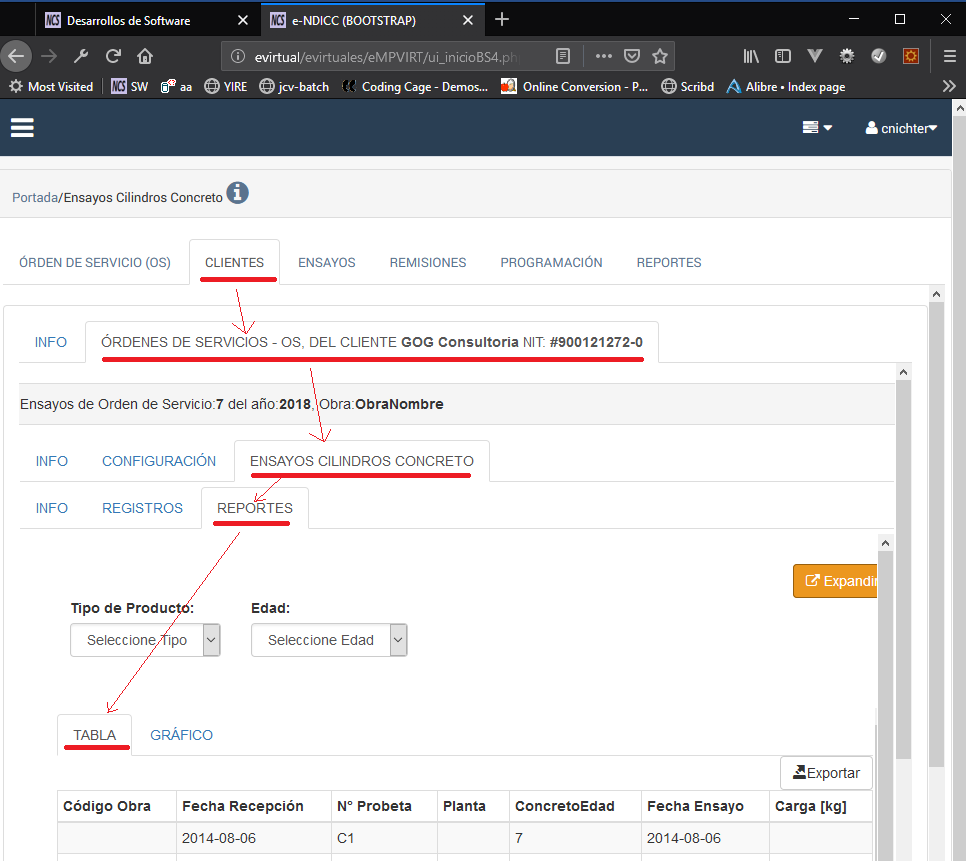Fig 121 Ejemplo Interacción con varios niveles y pestañas