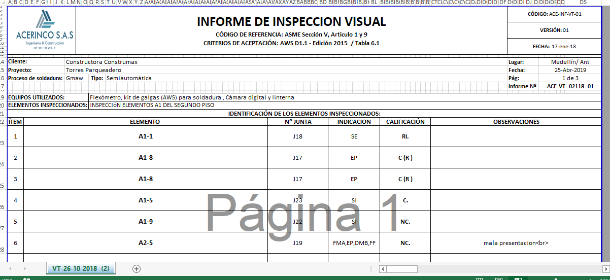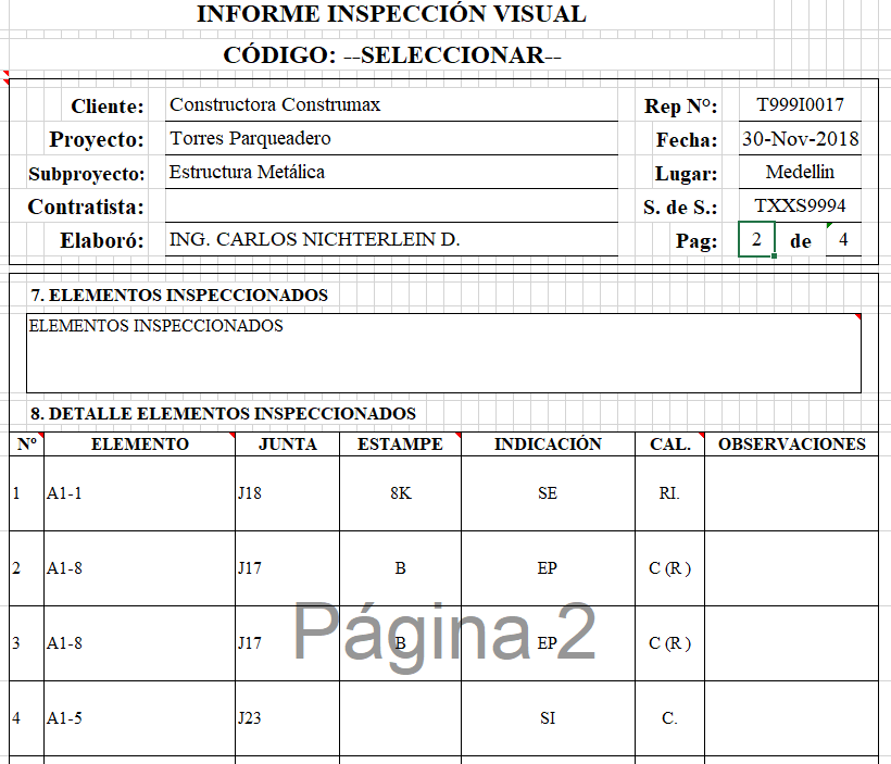 •PDF Se genera el reporte en formato PDF directamente para poder entregar al cliente. Esto permitiría por ejemplo que clientes puedan descargar directamente sus reportes, Este reporte puede incluir firmas del responsable que elaboró el documento o timbres de la empresa