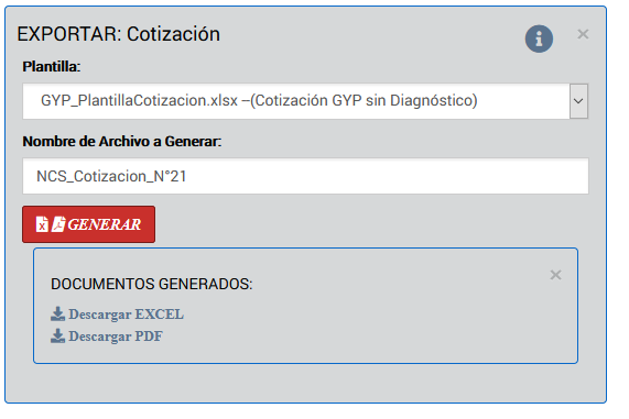 Permite exportar Cotizaciones al archivo EXCEL personalizado que determine la empresa. más detalles, ver Plantillas Cotización |