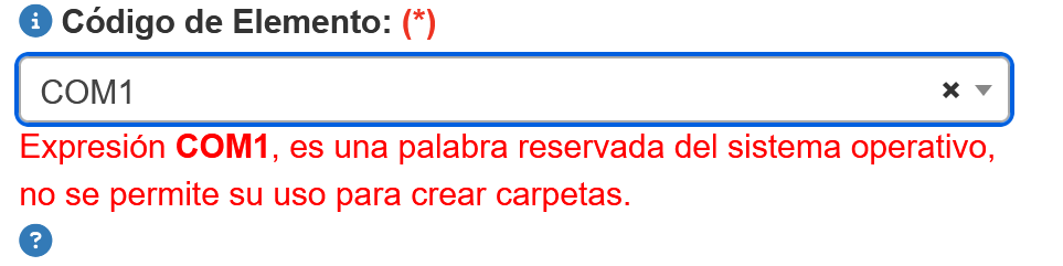 Al detectar el sistema operativo el empleo de una expresión (por ejemplo CON, COM1, LPT1), el sistema lo indicará y no permitirá agregar el elemento, tal como se aprecia en la siguiente imagen.