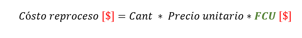 Así, esta última ecuación es la que se emplea para el cálculo del costo de Reproceso.