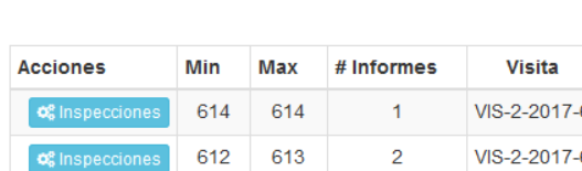 Cant. Informes Se refiere al número de inspecciones que se hará en esa visita, como cada inspección representa un informe. Si el Número de informe es distinto que uno, MIN y MAX tendrán valores distintos,
