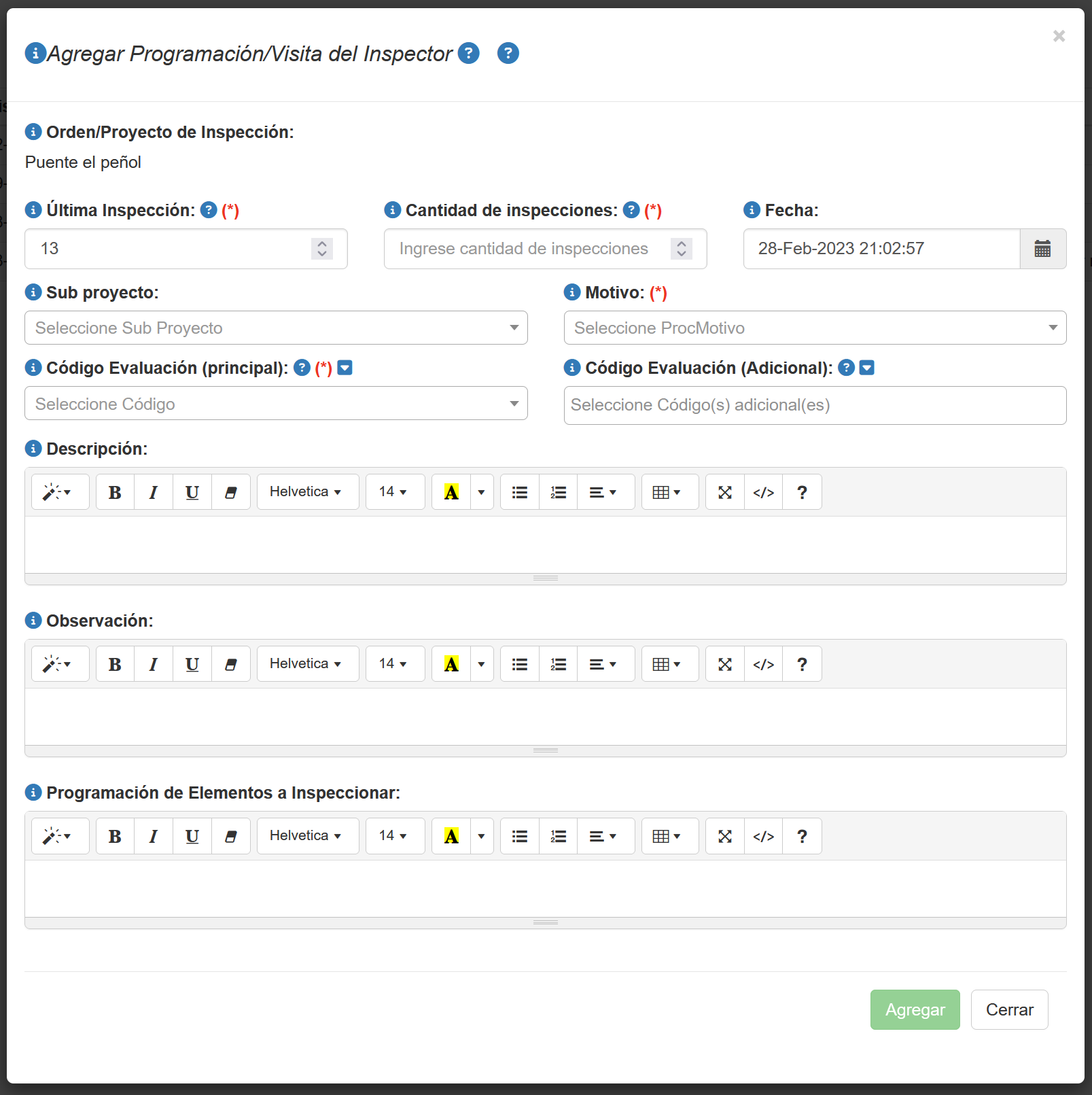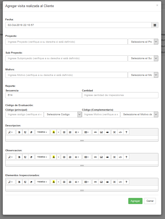 Editar el contenido de la inspección visita |