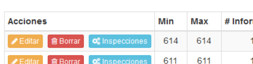Botones de Acción asociados a cada inspección registrada en ésta tabla. se distingue: |