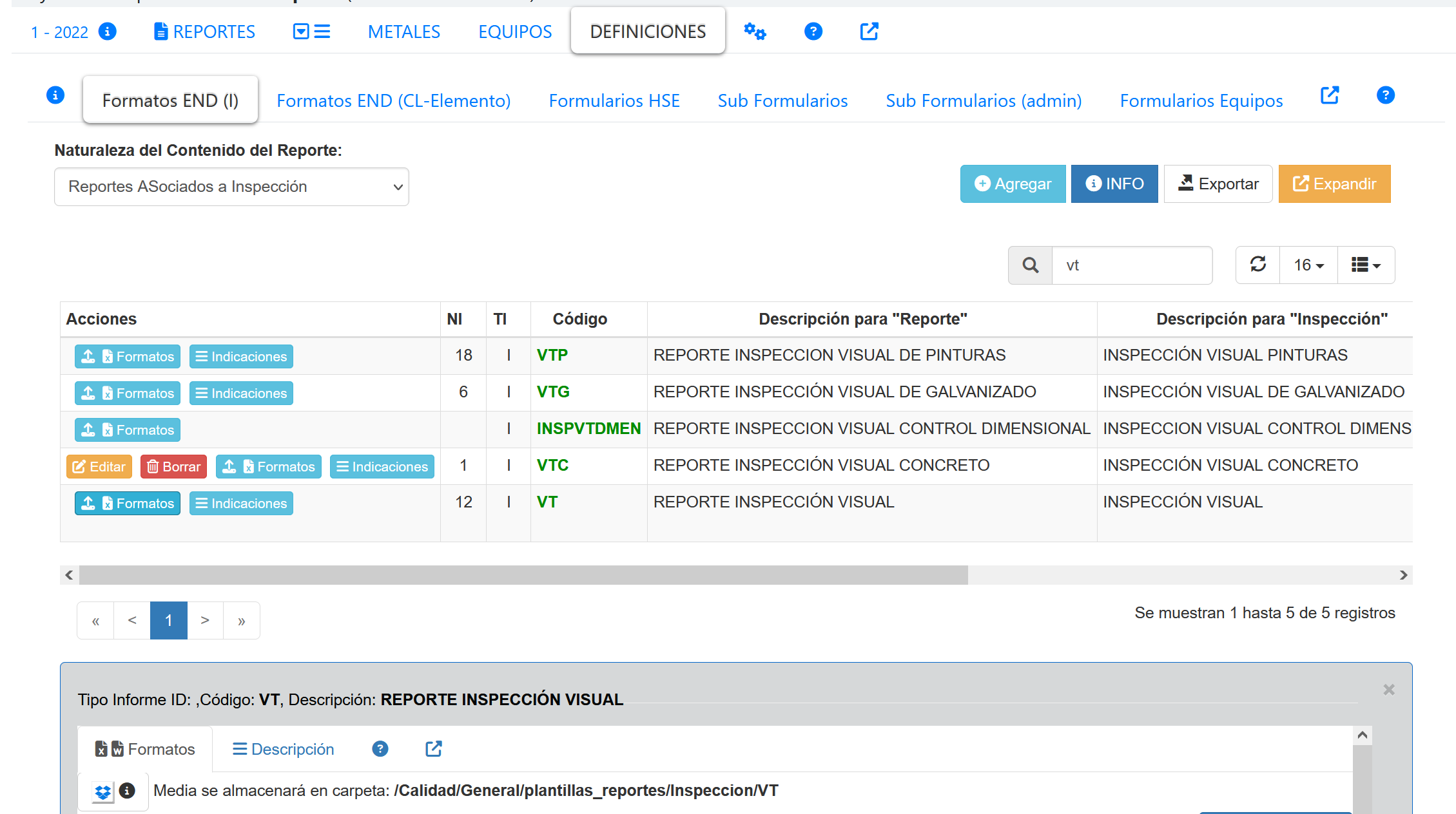Al seleccionar el botón Formatos de un determinado tipo de reporte, se activa una ventana de detalle con el Módulo de formatos apuntando a una carpeta en el medio de almacenamiento con el mismo nombre que el código del Reporte, tal como se muestra en la siguiente imagen.