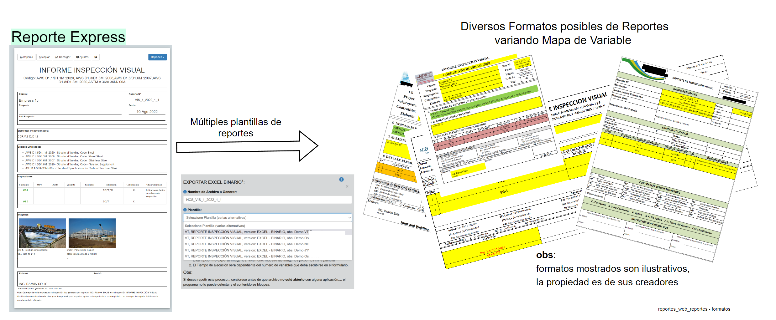 EL reporte Expres permite la generación de reportes en diversos formatos digitales. Para cada uno de estos formatos digitales se requiere también una plantilla de reporte. (ver Opción Reportes)