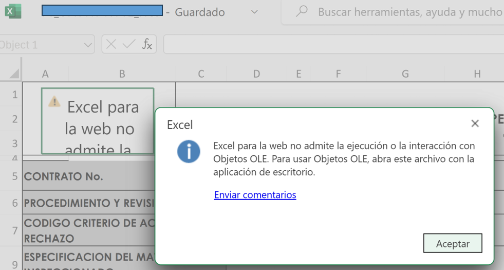 Fig 1129 Extracto de pantalla de programa EXCEL para la web donde se muestra errores en la representación de la imagen.