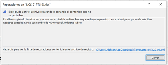 Fig 1131 error que se presentaba en reporte generado al abrirlo.