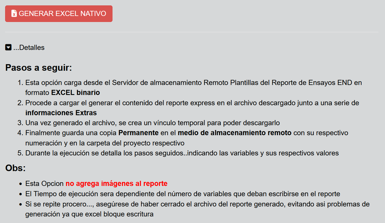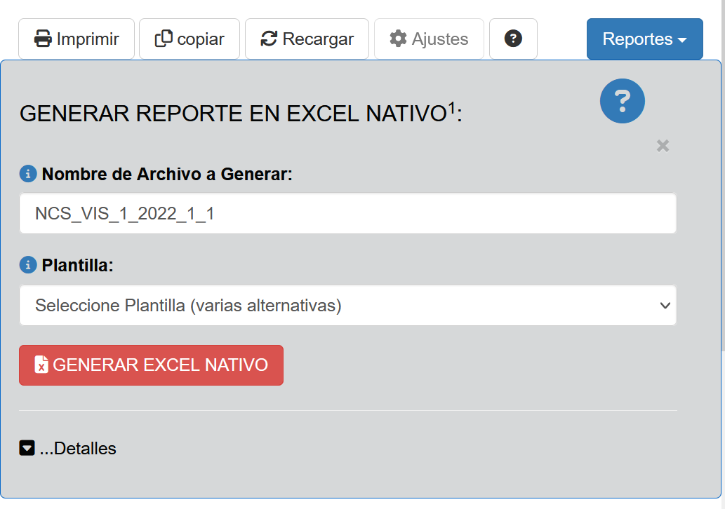 Fig 954 Ventana detalle para la generación de Reporte EXCEL en formato Nativo.