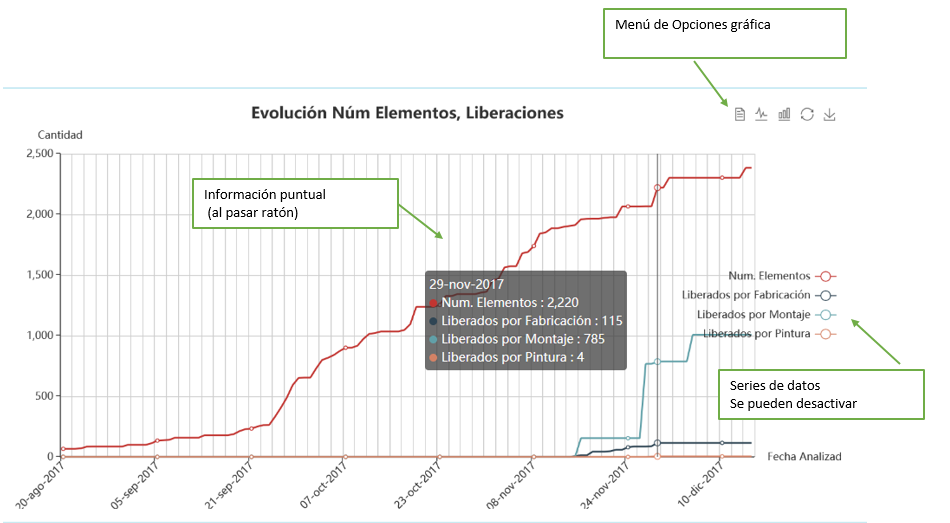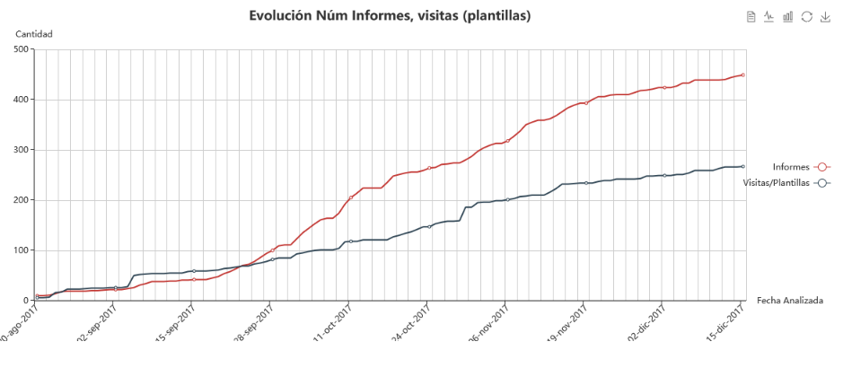Fig 352 Extracto de Pantalla mostrando un gráfico del tipo "Informes" para una determinada Orden de Servicio con los parámetros seleccionados.
